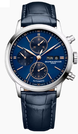 The Classima 10784 boasts a sophisticated design with a blue sunburst dial, gilded accents, and azure sub-dials. Housed in a 42mm polished stain...