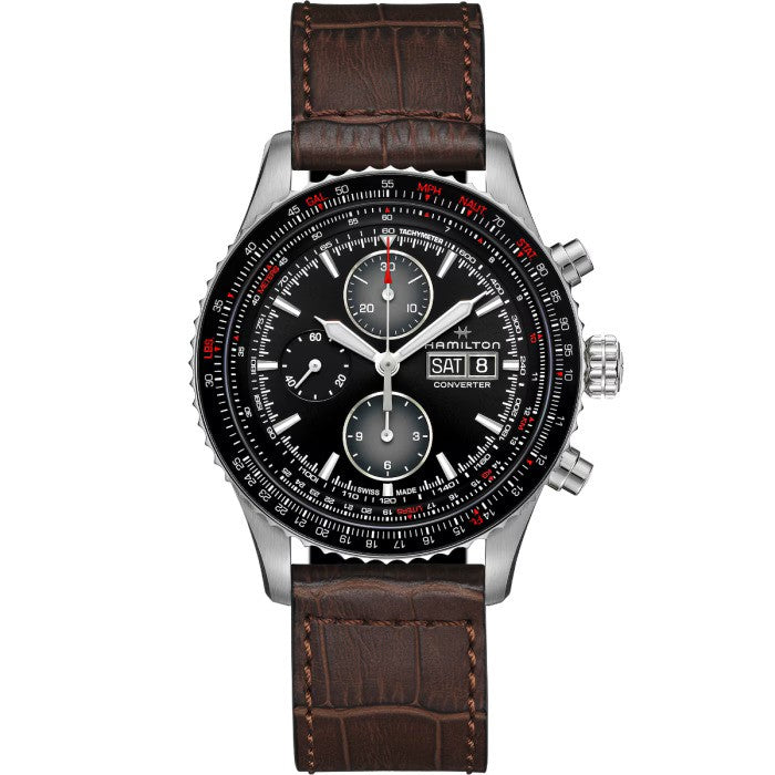 Khaki Aviation Converter Auto Chrono Black / Brown Leather