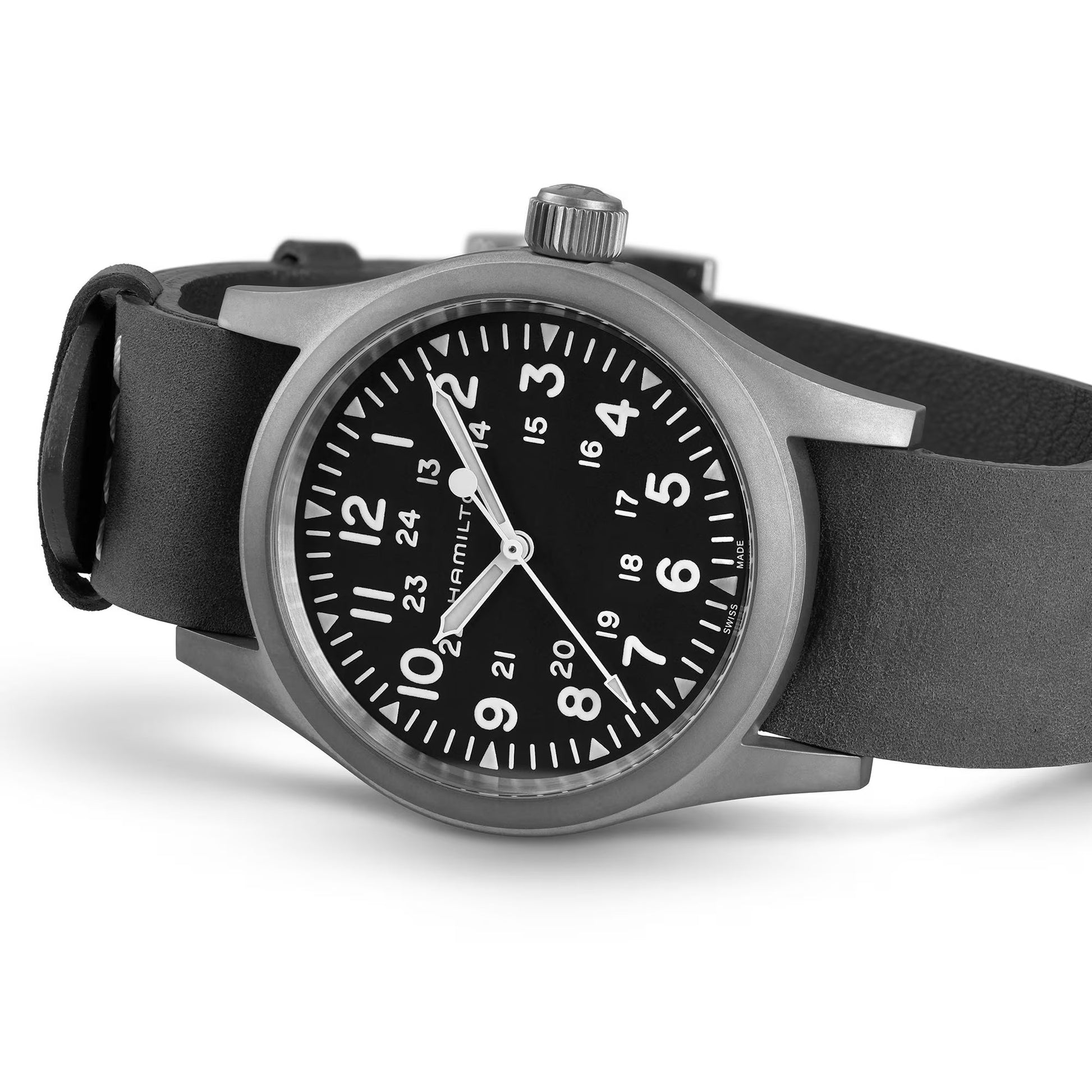 The original soldier's watch gets an original upgrade with Hamilton's first-ever bronze case. Each Khaki Field Mechanical Bronze has a unique story that will unfold with each wear as its case develops a distinct patina over time. Powered by our exclusive hand-wound H-50 movement, fitted to a titanium case back and matched with a soft brown leather NATO strap, this authentic 38mm favorite celebrates Hamilton's military heritage with an eye towards the future. What story will your field watch tell?