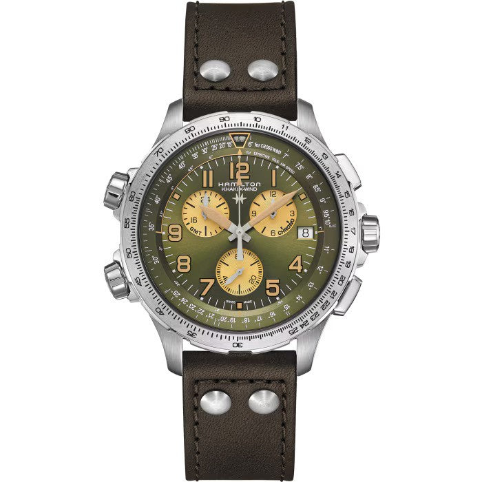 Khaki X-Wind GMT Chrono Quartz Green / Brown Leather