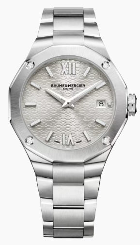 Driven by a “Swiss Made" quartz movement, this Riviera is adorned with an silver...