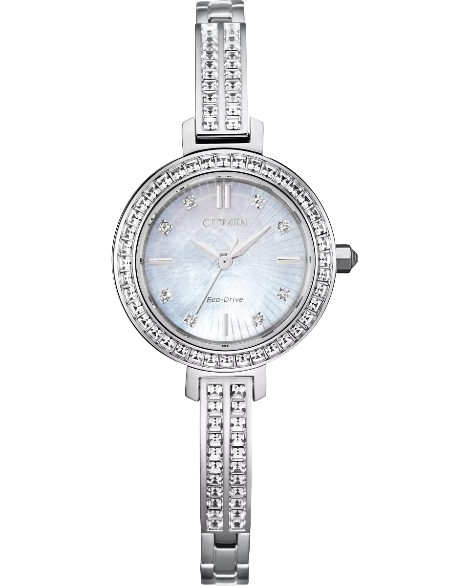 An exciting addition the Silhouette Crystal collection from Citizen is the princess cut bangle design. Both the stainless-steel bracelet and 25m...